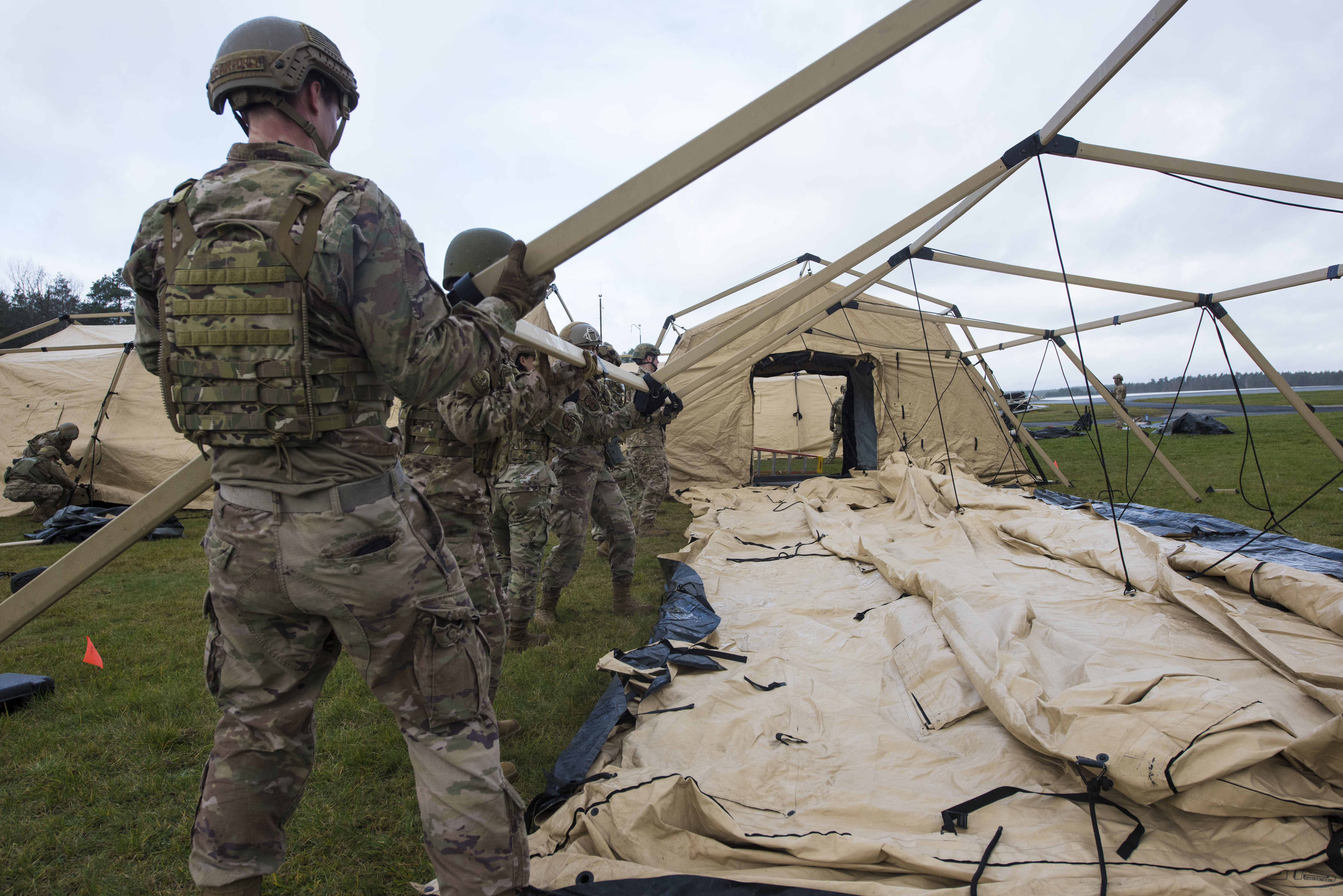 U.S. Air Force Staff. Sgt. John Baldelli, 435th Contingency Response Squadron weather forecaster, configures a tactical meteorological observing system as part of a base build-up during exercise Agile Wolf 21-01 at U.S. Army Garrison Grafenwoehr, Bavaria, Nov. 16, 2020. Baldelli was responsible for relaying and predicting weather conditions to the pilots and Airmen engaging in contingency training operations during the exercise. Agile Wolf 21-01 is an exercise designed to sharpen the tactics, techniques and procedures for establishing expeditionary airfields on demand. (U.S. Air Force photo by Senior Airman Milton Hamilton)