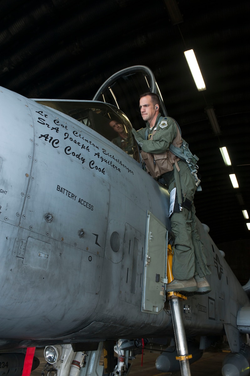 SPANGDAHLEM AIR BASE, Germany – Lt. Col. Clinton Eichelberger, 81st Fighter Squadron commander, prepares to step into an A-10 Thunderbolt II on the flightline here Sept. 4, to take off for Ramstein Rover 2012 (RARO12). This month-long tactical flying exercise is held at and around Namest Air Base, Czech Republic. More than 15 nations are participating in the NATO partnership-building exercise, which will give each country the opportunity to share joint tactics, techniques, capabilities and procedures. (U.S. Air Force photos by Senior Airman Natasha Stannard/Released)