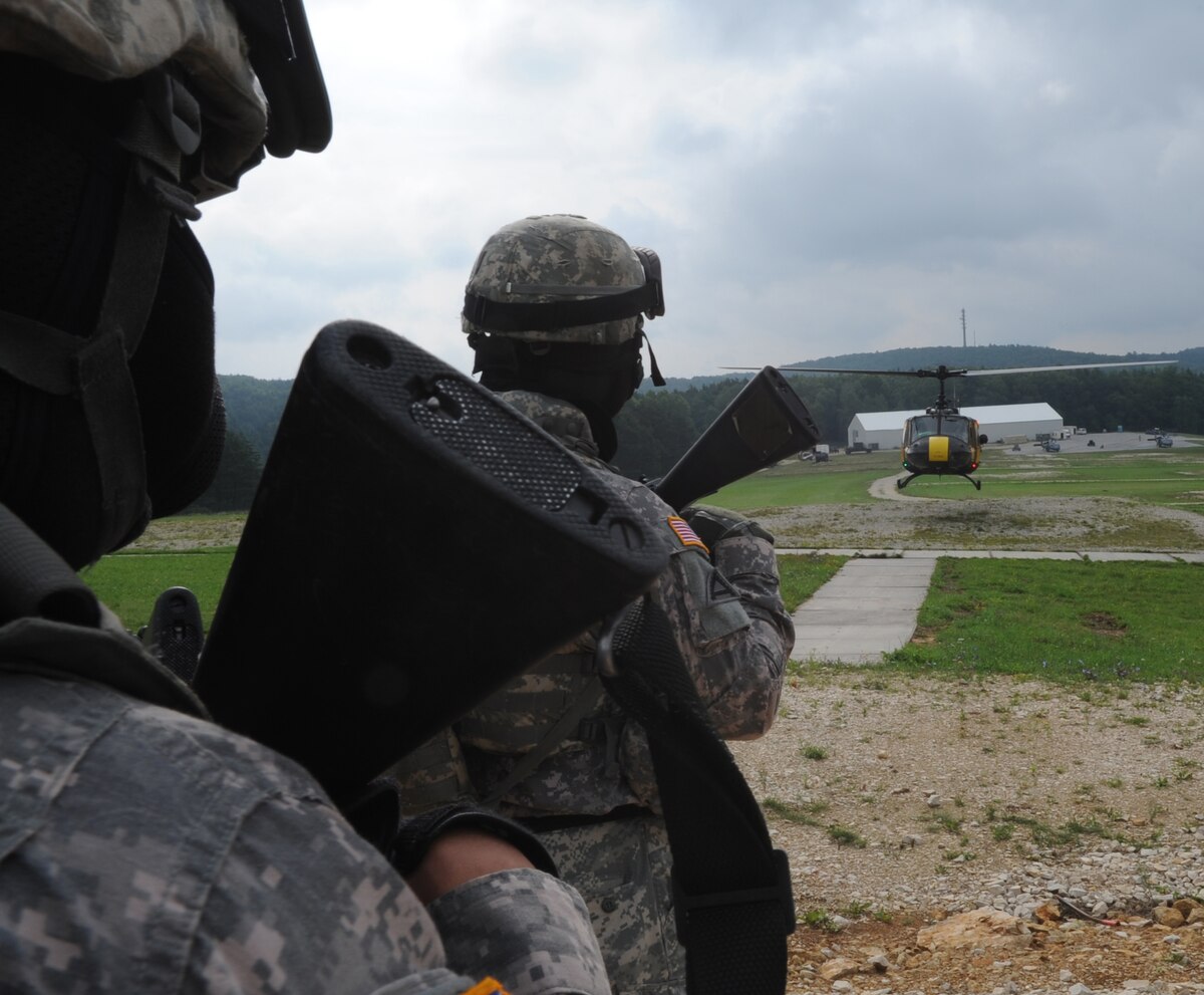 U.S. Air Force, Army and North Atlantic Treaty Organization's (NATO) members walk to the loading zone for an air assault mission scenario during exercise ALLIED STRIKE 10, Hohenfels, Germany, Aug. 3, 2010. AS 10 is Europe's premier close air support (CAS) exercise, held annually to conduct robust, realistic CAS training that helps build partnership capacity among allied NATO nations and joint services while refining the latest operational CAS tactics. For more ALLIED STRIKE information go to www.usafe.af.mil/alliedstrike.asp. (U.S. Air Force photo by Senior Airman Caleb Pierce)