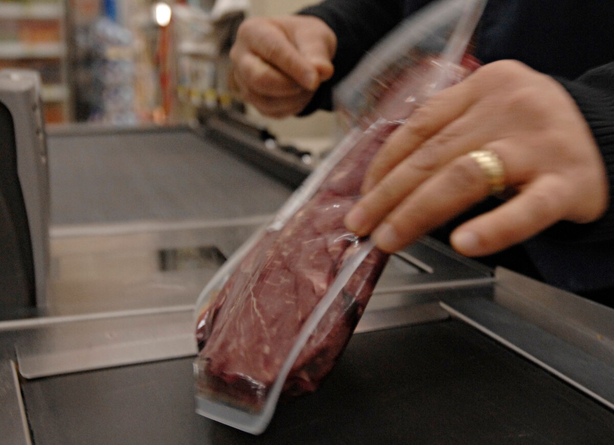 Mehmet Ozkaya, commissary register clerk, scans a package of beef, Jan. 7. Most fresh produce provided by Incirlik’s commissary is ordered from warehouses in Germany and inspected before being placed on the shelf, Jan. 7. (U.S. Air Force photo/Senior Airman Benjamin Wilson)