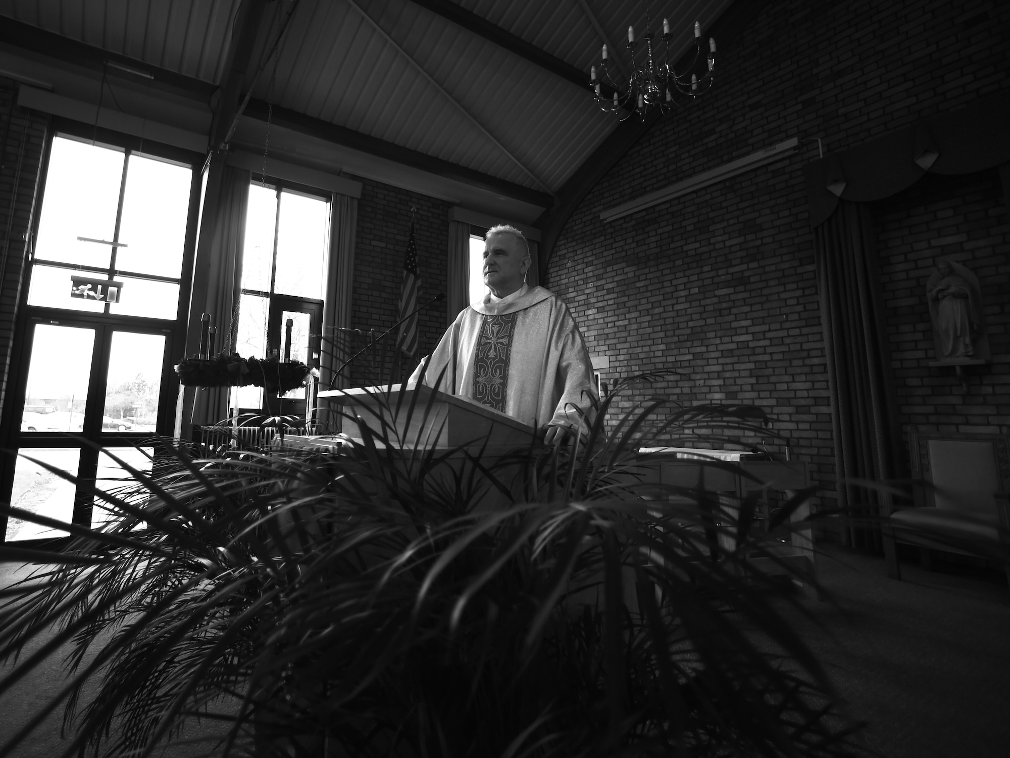 U.S. Air Force Chaplain, Maj. Mitchell Zygadlo, 501st Combat Support Wing Roman Catholic chaplain, looks around the RAF Alconbury, United Kingdom, chapel, and smiles, Dec. 8, 2015. Zygadlo, originally from Poland, immigrated to the United States following his ordination as a Catholic priest. (U.S. Air Force photo by Tech. Sgt. Jarad A. Denton/Released)
