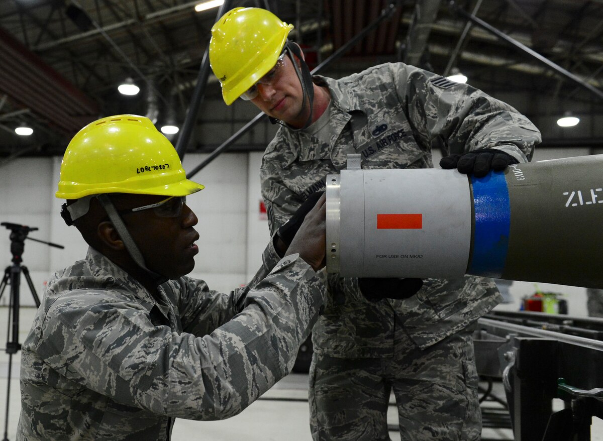 Col. Robert Novotny, 48th Fighter Wing commander, presents Capt. Matthew Kuta, 492nd Fighter Squadron pilot, the Distinguished Flying Cross at the Strike Eagle Complex during an Installation Excellence Selection Board visit on Royal Air Force Lakenheath, England, Jan. 15, 2015. Kuta led two F-15Es responding to troops in a contact situation in support of Operation ENDURING FREEDOM in Afghanistan, May 21, 2014. (U.S. Air Force photo by Airman 1st Class Erin R. Babis/Released)