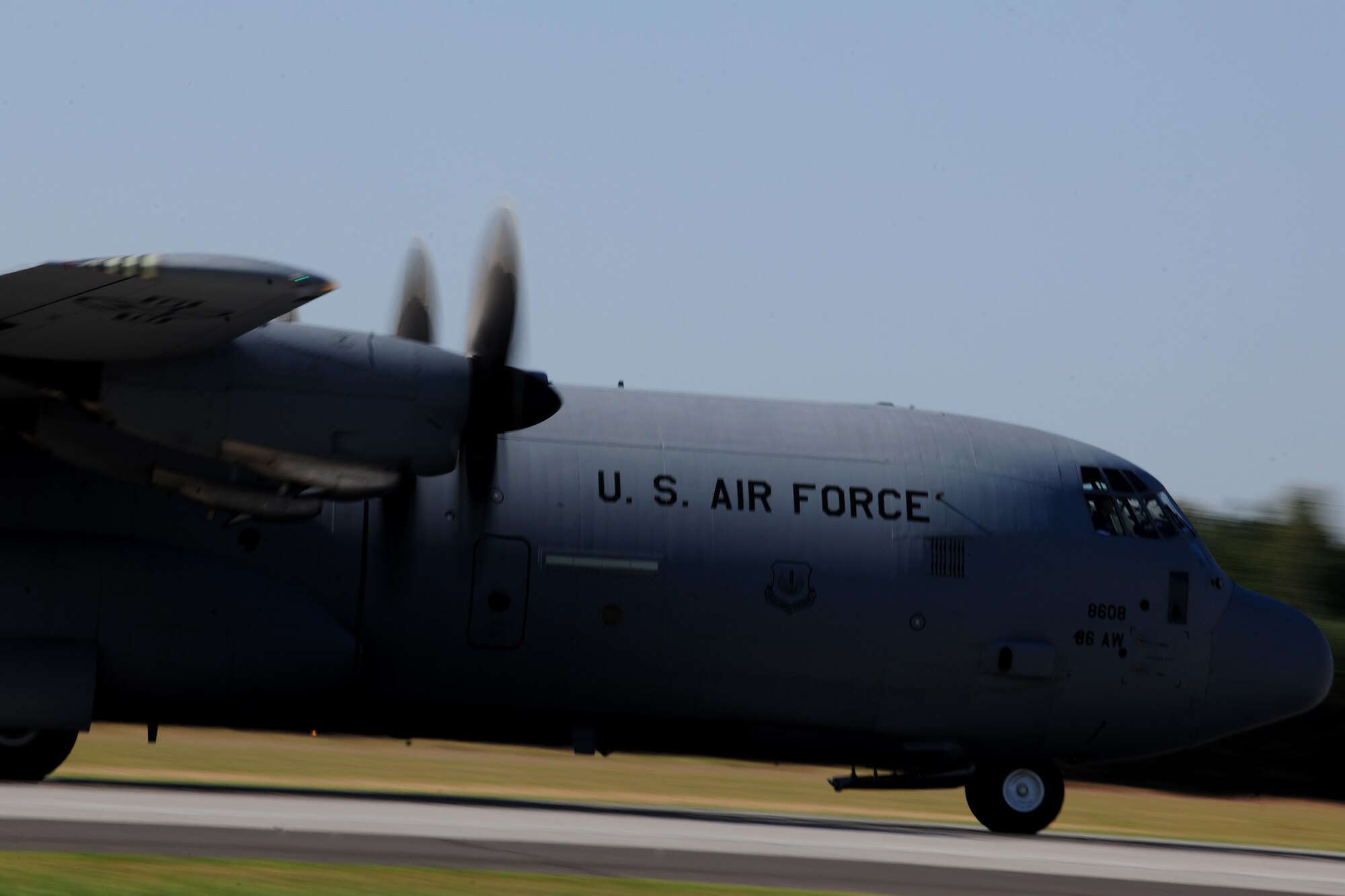 U.S. Air Force Master Sgt. Jeremy Leuch, 86th Aircraft Maintenance Squadron production superintendent, left, and 2nd Lt. Su Johnson, 86th AMXS sortie support officer in charge, walk toward a C-130J Super Hercules, preparing for takeoff during a flying training deployment in support of Operation Atlantic Resolve, at Powidz Air Base, Poland, Aug. 7, 2014. Heralded as the United States’ continuing commitment to collective security of NATO allies, the operation allows America to host a broad range of training opportunities with Poland and the neighboring Baltic States. (U.S. Air Force photo by Staff Sgt. Jarad A. Denton/Released)