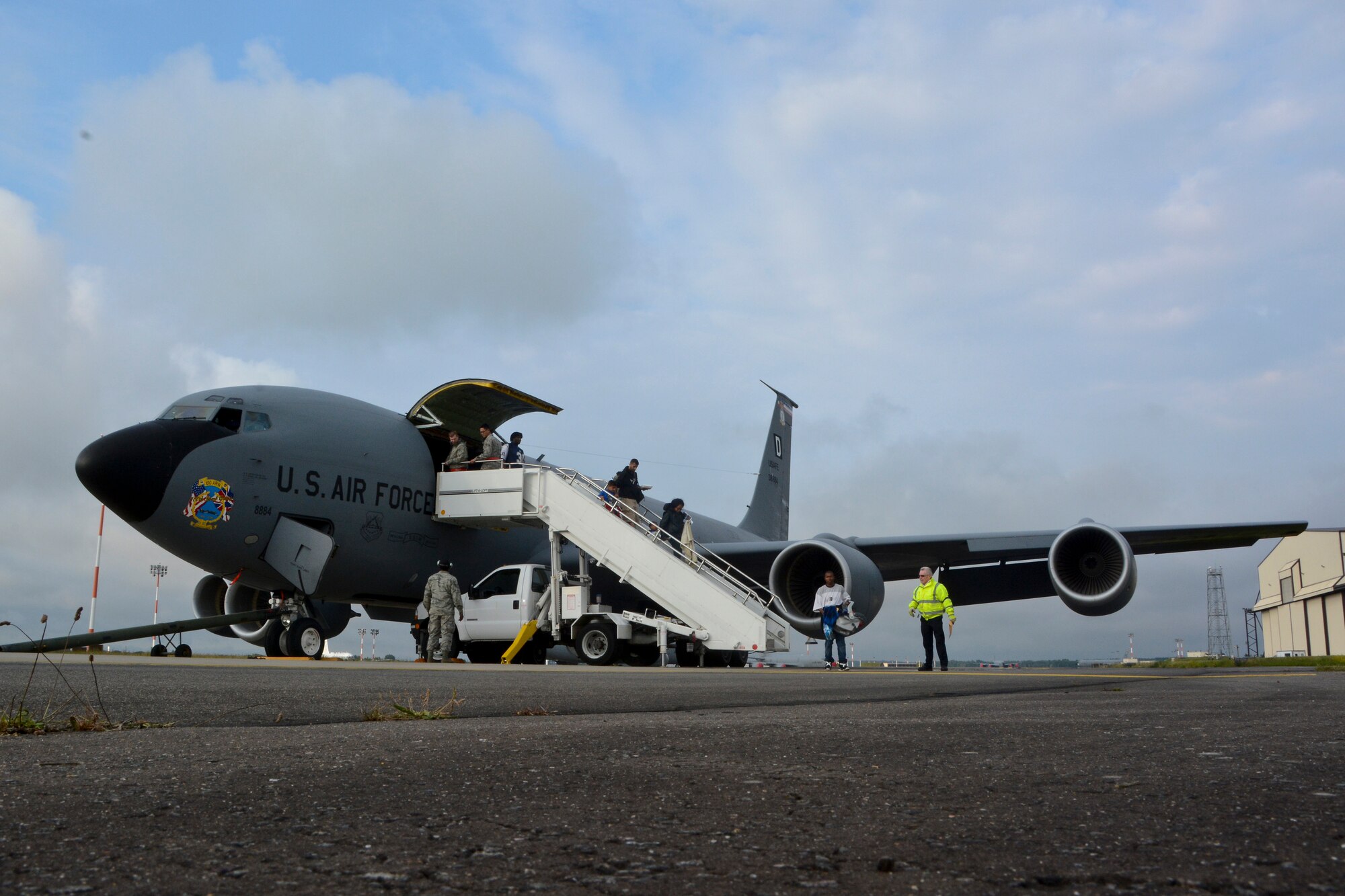 U.S. Air Force Staff Sgt. Taunee Tibbs, left, 86th Aeromedical Evacuation Squadron, Ramstein Air Base, Germany, medical technician from San Deigo, pumps oxygen into a training dummy as U.S. Air Force Staff Sgt. Rolando Rodriguez, right, 86th AES medical technician from Houston, performs chest compressions, June 24, 2014, on a KC-135 Stratotanker over Germany. Airmen from the 86th AES conducted in-flight medical training on the aircraft to get accustomed to the airframe. (U.S. Air Force photo/Senior Airman Micaiah Anthony/Released)