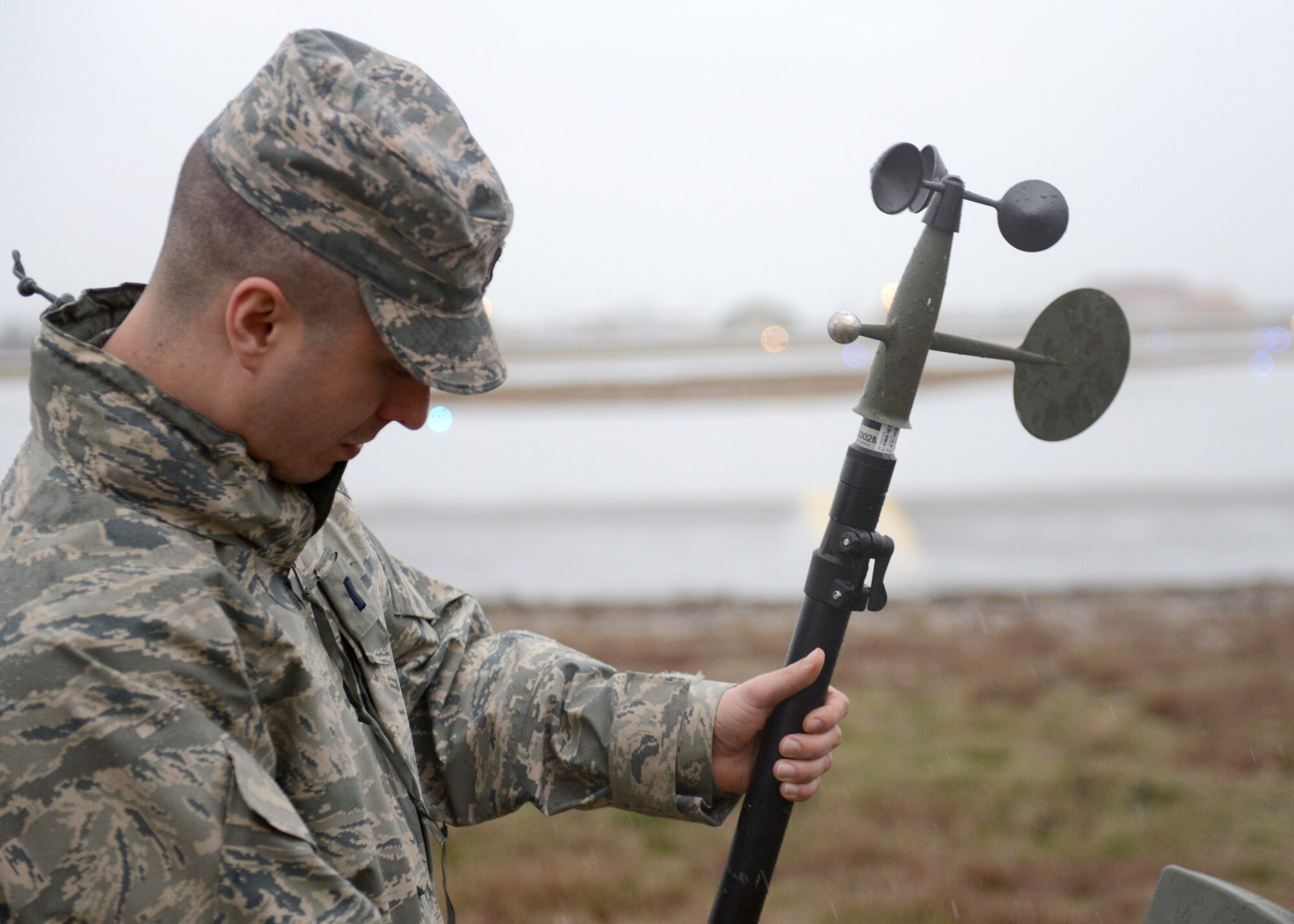 First Lieutenant David DeMeuse, 31st Operations Support Squadron Weather Flight commander, observes cloud patterns over Italy using real-time satellite imagery, Jan. 30, 2014, at Aviano Air Base, Italy. The weather flight employs the "eyes forward" approach using real-time radar, satellite imagery, sensor readouts and visual observations to tailor weather conditions specifically for the 31st Fighter Wing. (U.S. Air Force photo/Airman 1st Class Ryan Conroy)