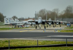 The second theater security package consisting of twelve F-15C Eagle fighter aircraft arrived at Leeuwarden Air Base, Netherlands, March 31 through April 1, marking the beginning of their six-month deployment to Europe.The 125th Fighter Wing, Florida Air National Guard, Jacksonsville, Fla., leads