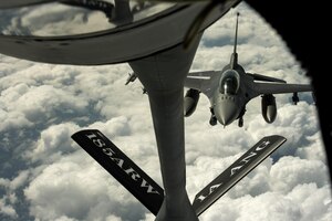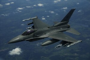 An F-16 Fighting Falcon, 510th Fighter Squadron, deployed to Krzesiny Air Base, Poland, in support of AviationDetachment rotation 17-3, exercise BALTOPS and exercise Saber Strike flies over Latvia, June 7, 2017. BALTOPS isan annually recurring multinational exercise designed to enhance flexibility