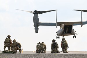 Nov. 15, 2023 USAF conducts joint hoist training with EARF, USMC U.S. Airmen with the 82nd Expeditionary Rescue Squadron at Camp Lemonnier, Djibouti, partnered with U.S. Army National Guard Soldiers from the East Africa Response Force and Marine Medium Tiltrotor Squadron 261 (VMM-261) for routine hoist training using MV-22 Osprey tiltrotor aircraft Nov. 2, 2023.